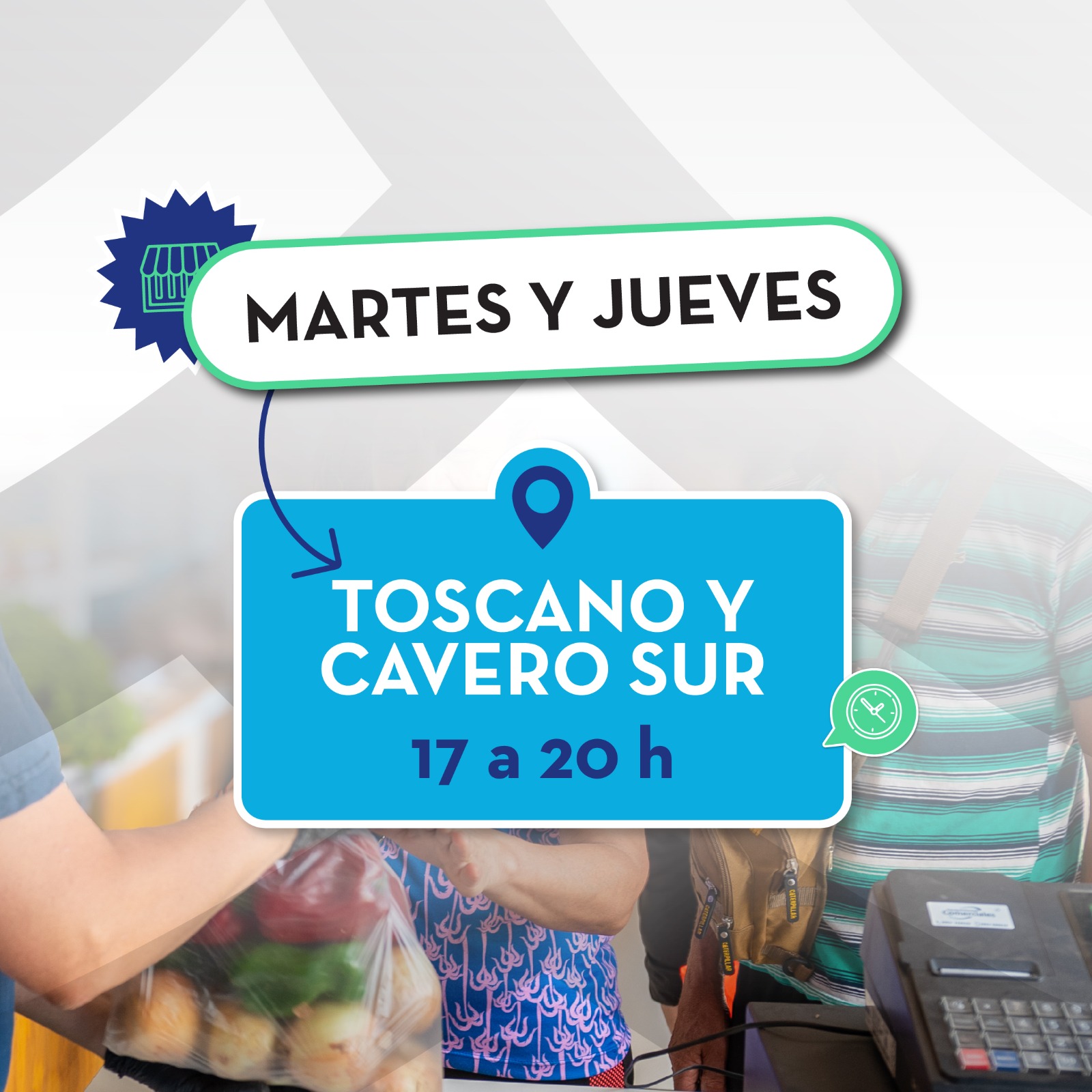 El espacio funcionará de 17 a 20 horas en su sede de Cavero y Toscano Sur, donde vecinas y vecinos podrán acceder a productos de almacén, carnes, frutas, verduras y panificados, con mercadería fresca y precios accesibles.