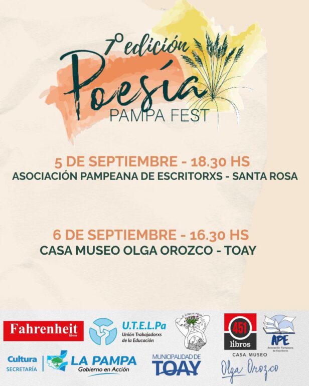 La poesía y las artes volverán a encontrarse en una nueva edición del Poesía Pampa Fest, que se realizará el viernes 5 y sábado 6 de septiembre en Santa Rosa y Toay. Durante dos jornadas intensas, el festival abrirá sus puertas a lecturas, entrevistas, homenajes, música y expresiones artísticas diversas, con un espacio especial de Micrófono Abierto para quienes deseen compartir su voz.