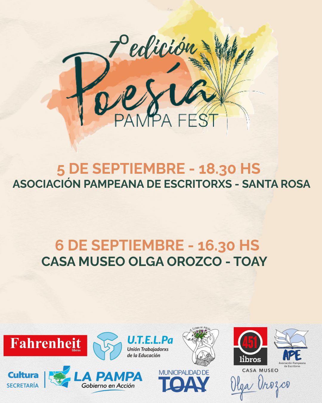 Organizado por Águeda Franco, Lisa Segovia, Josefina Bravo y Alicia Santillán, el Pampa Fest fue declarado en 2022 de Interés Legislativo. Este año cuenta con el acompañamiento de la Secretaría de Cultura de La Pampa, la Municipalidad de Toay, la Asociación Pampeana de Escritorxs, UTELPa y librerías locales como Estado de Poesía, Fahrenheit y 451 Libros.