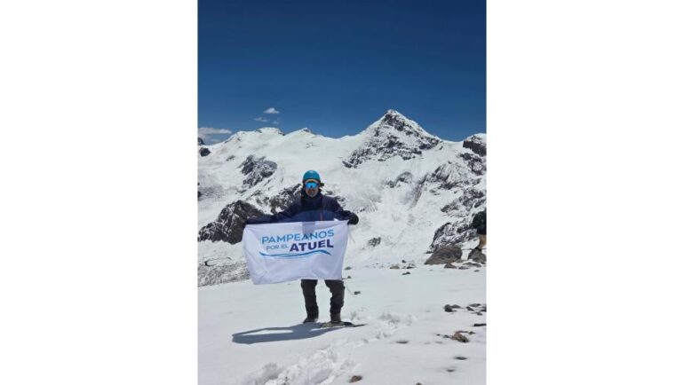 El histórico reclamo pampeano por el río Atuel tuvo un nuevo y potente gesto simbólico en uno de los puntos más imponentes del continente. El pampeano Adolfo “Fito” Molas desplegó una bandera con la consigna “Pampeanos por el Atuel” a más de 6.200 metros de altura, en plena expedición al Aconcagua, la montaña más alta de América.