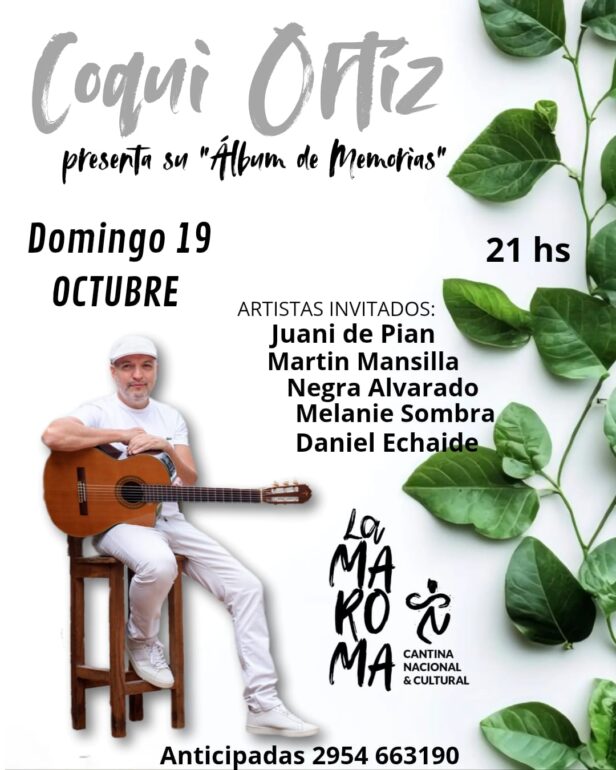 El reconocido artista llega con un concierto unipersonal de «décimas y canciones» con el que viene recorriendo los escenarios para presentar » Álbum de Memorias» , éste disco es el resultado de un largo proceso creativo que Coqui Ortiz inició hace varios años.