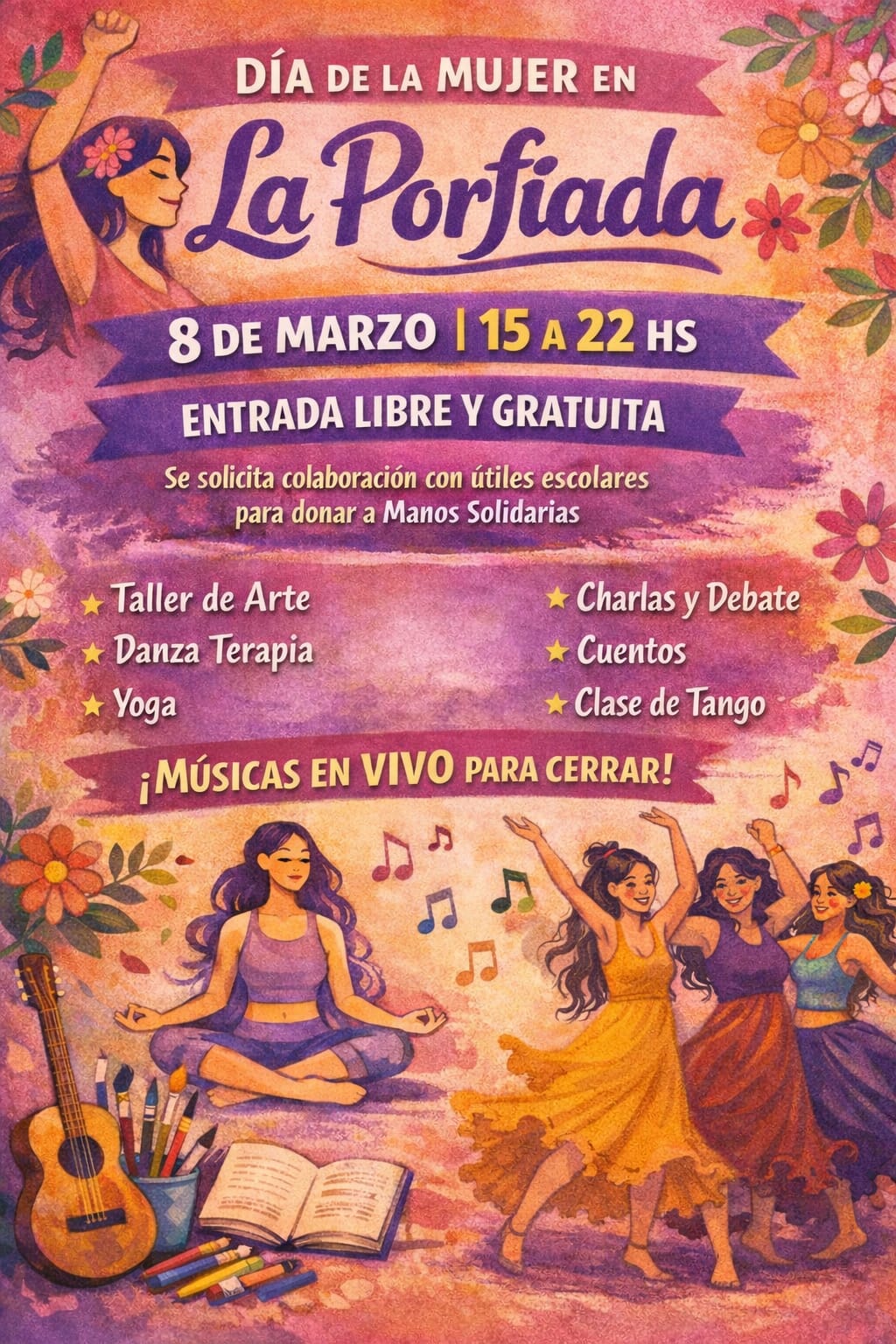Durante la tarde habrá talleres, danza, espacios de movimiento consciente, música en vivo y distintas actividades participativas que invitan a compartir experiencias y miradas. La iniciativa busca generar un ámbito de celebración y construcción colectiva, poniendo en valor la creatividad, la sensibilidad y la potencia transformadora de las mujeres.