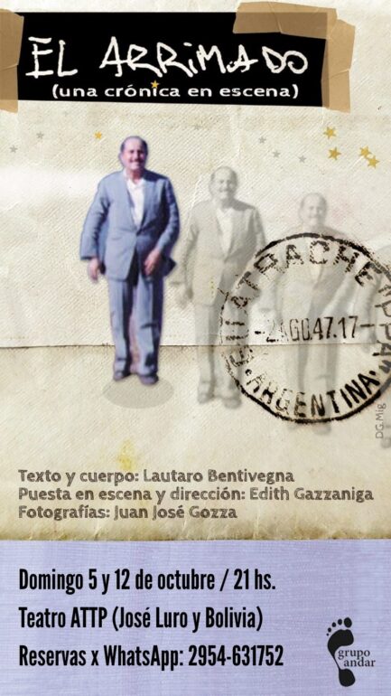 EL ARRIMADO, una obra de periodismo performático con texto y actuación del periodista Lautaro Bentivegna y dirección de Edith Gazzaniga que recupera la historia de Juan José Gozza, mítico fotógrafo del sur pampeano.