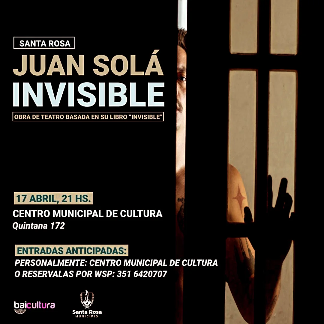 Unipersonal basado en su libro “Invisible”. Un drama en primera persona que recorre los límites entre la ficción y la realidad, con una mirada poética sobre una mente fragmentada y un corazón atravesado por el amor, la memoria y sus contradicciones.