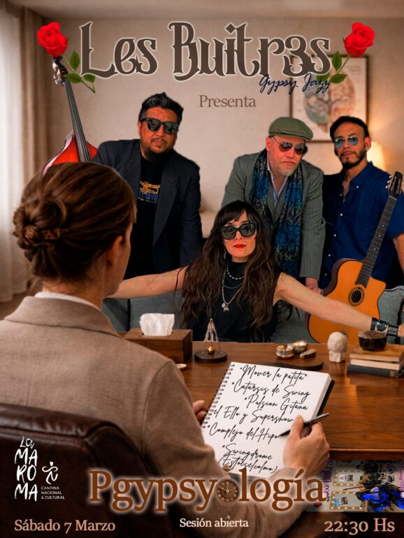 Este sábado desde las 22:30, Cantina La Maroma (Alvear 42) será el escenario de una noche única con la presentación de «Gypsyología», el nuevo espectáculo de Les Buitr3s. Una propuesta que fusiona música y humor a partir de un ingenioso cruce entre el Gypsy jazz y la psicología, para indagar —en clave de «sesión abierta»— qué tipo de «Swingdrome» tiene al público «entreverado».