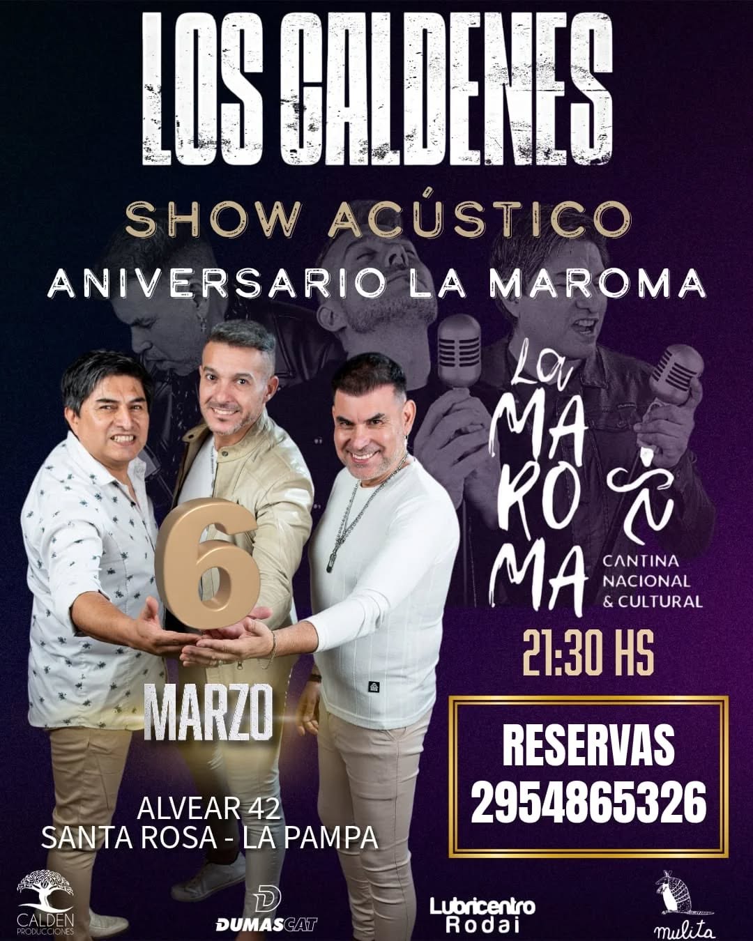 Marzo llega cargado de música con la agenda de Los Caldenes, que este fin de semana tiene dos presentaciones imperdibles. La agrupación se presentará el viernes 6 en el marco del aniversario de La Maroma Cantina Nacional y Cultural, un clásico espacio de Santa Rosa, La Pampa. La cita será a las 21:30 horas en Alvear 42, en lo que promete ser una noche especial con formato show acústico.