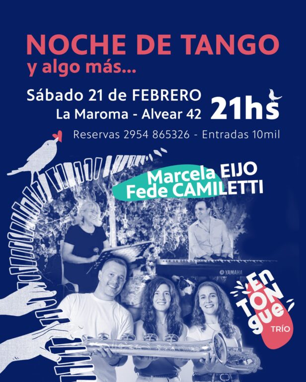La cita es en Alvear 42. Las entradas tienen un valor de $10.000 y las reservas se realizan al 2954 865326. Una propuesta cultural para vivir el sábado a puro tango.