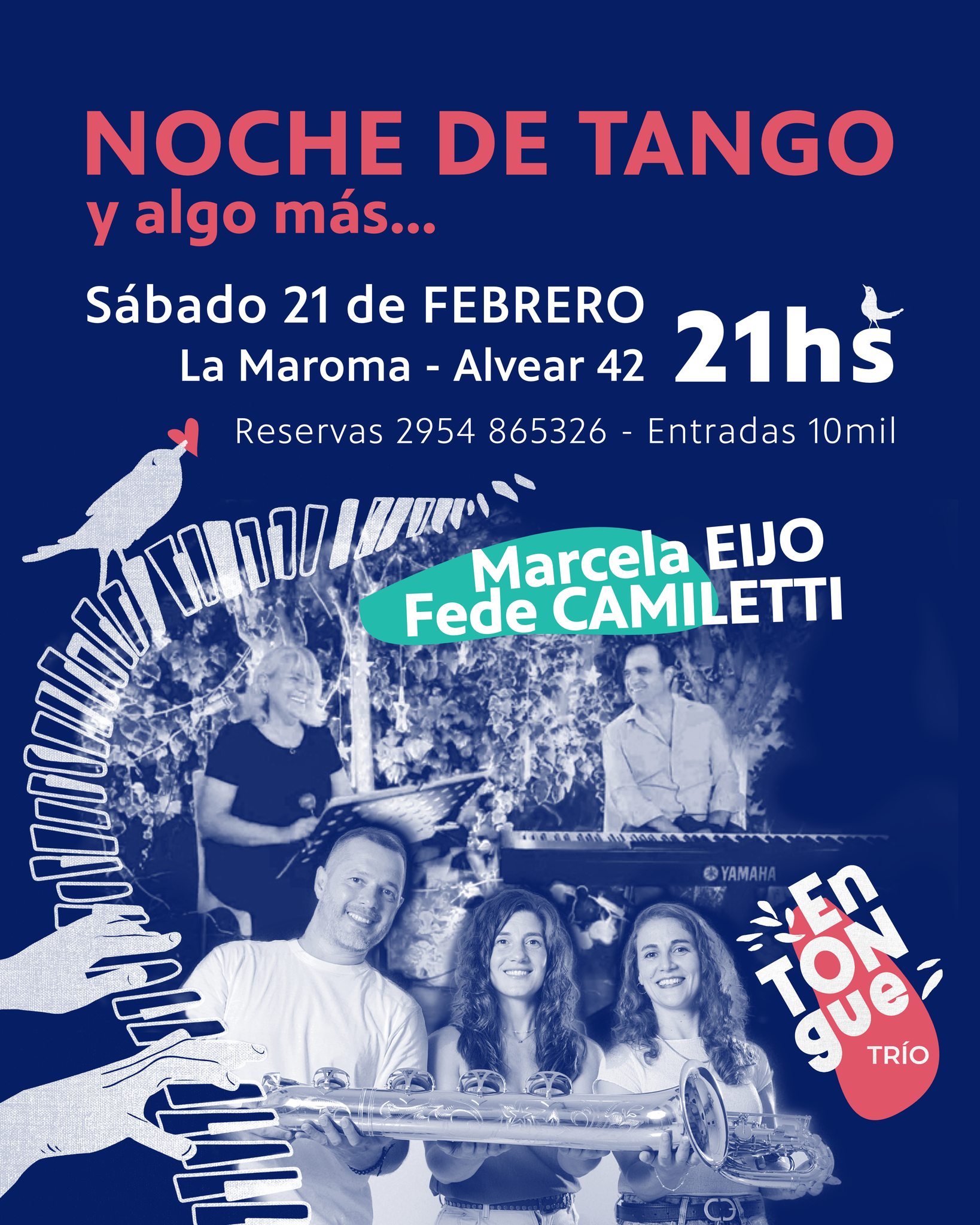 La velada contará con las presentaciones de Marcela Eijo, Fede Camiletti y EnTongue Trío, en un encuentro pensado para disfrutar del tango y sus cruces con otros sonidos.