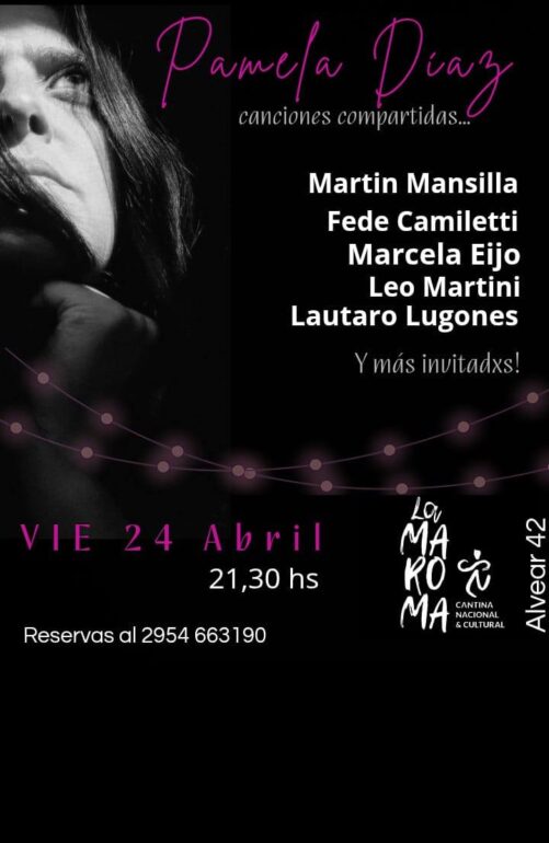 La escena cultural de Santa Rosa suma una nueva propuesta para su agenda musical con una noche de canciones compartidas encabezada por Pamela Díaz, que se presentará el próximo viernes 24 de abril a las 21:30 en La Maroma Cantina Nacional & Cultural.