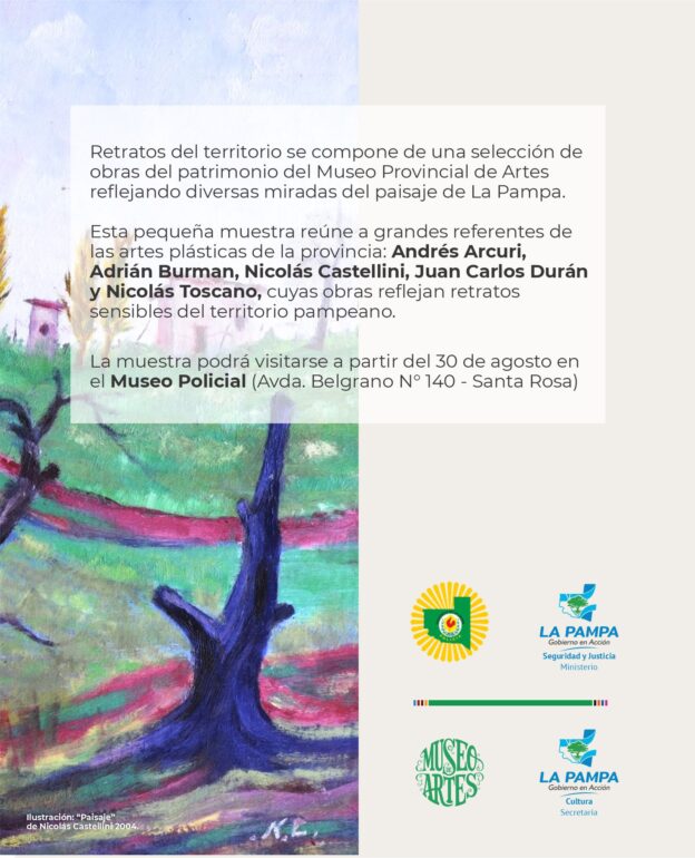 En el marco de la celebración del 139° aniversario de la Policía de La Pampa, la Secretaría de Cultura, a través del Museo Provincial de Artes, se suma con la muestra «Retratos del Territorio». Esta exposición, integrada por una selección de obras del patrimonio del Museo, ofrece una mirada artística y sensible sobre el paisaje pampeano.