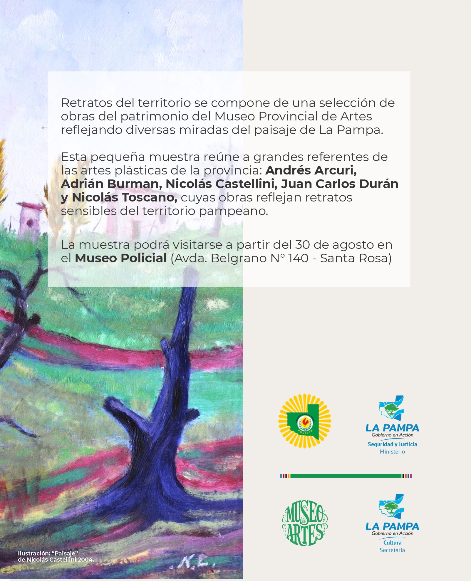 La Secretaría de Cultura invita a ser parte de esta celebración que une el arte y la historia de La Pampa y visitar esta exposición que se exhibirá a partir del 30 de agosto en el Museo Policial (Av. Belgrano N° 140, Santa Rosa) y permanecerá durante un mes.
