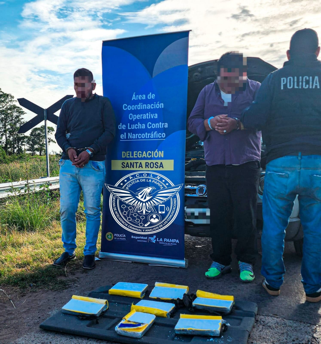 Un importante operativo coordinado por la Policía pampeana permitió interceptar un cargamento de casi ocho kilos de cocaína que tenía como destino la ciudad de Santa Rosa. La sustancia era trasladada desde la Ciudad Autónoma de Buenos Aires y estaba destinada a su distribución en distintos puntos de la provincia.