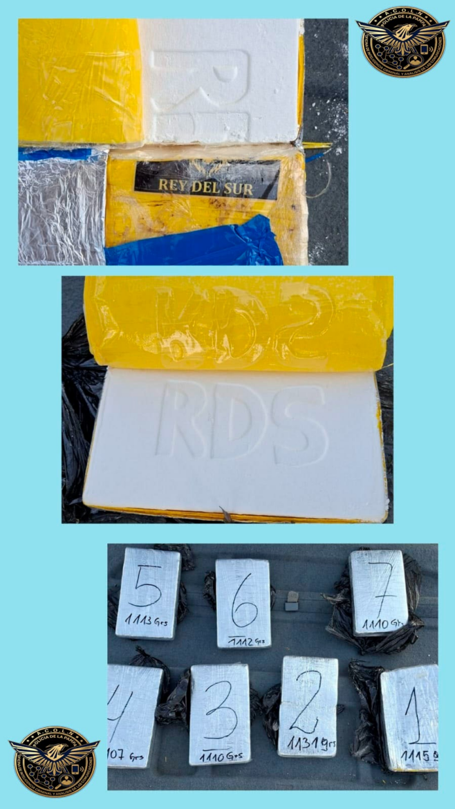 El procedimiento permitió interceptar un vehículo en el que se hallaron siete paquetes compactos de cocaína ocultos, con un peso total de 7,798 kilogramos. Según fuentes oficiales, el cargamento tendría un valor estimado cercano a los 72 millones de pesos.