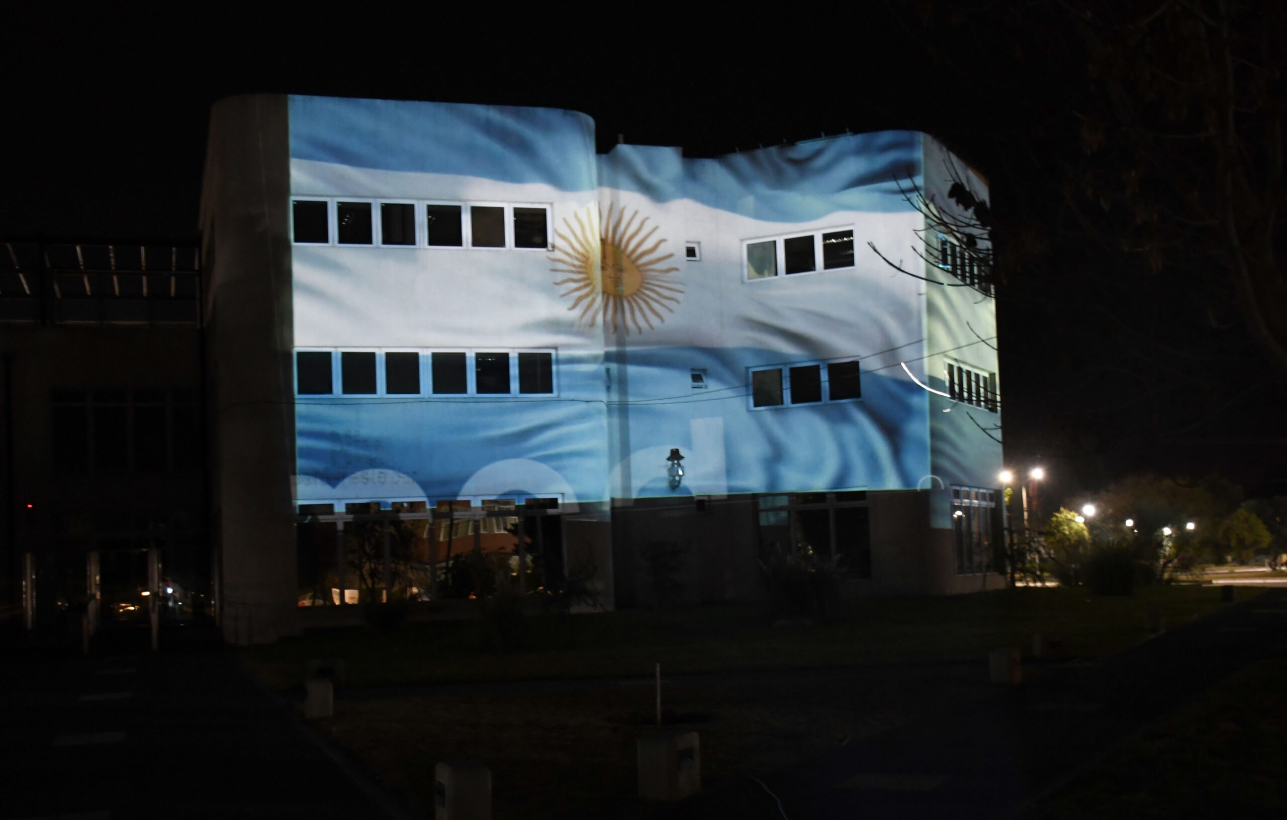 En el marco del Día de la Bandera, el Gobierno de La Pampa presentó ayer por la noche un espectáculo de mapping sobre la fachada del MEDASUR de la ciudad capital provincial, emblemático edificio del quehacer cultural pampeano. A través de luces, animaciones y efectos visuales, la bandera argentina se proyectó de manera impactante, creando una experiencia inmersiva que buscó resaltar el valor simbólico de los colores patrios. La intervención, propuso un recorrido visual por la historia y la identidad nacional, con una puesta en escena donde el celeste y el blanco fueron protagonistas.