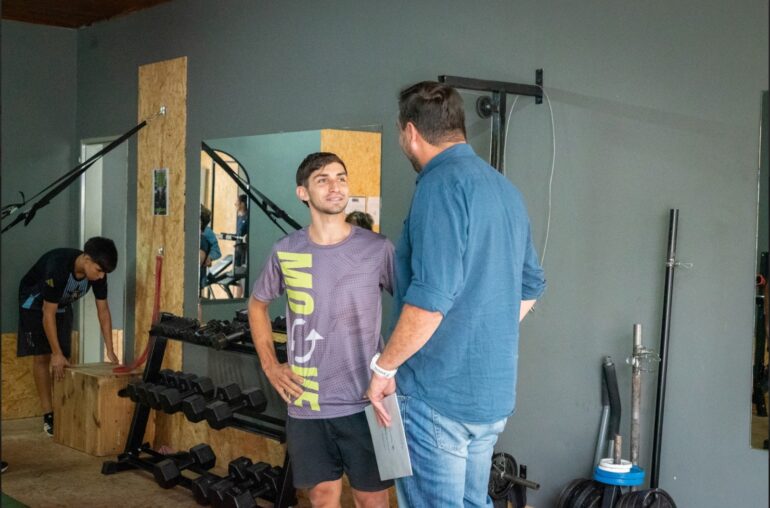 El intendente Luciano di Nápoli estuvo en Moove, un gimnasio funcional de fuerza y musculación, y entregó un crédito a Francisco Rivas. Se trata de un emprendedor que vive en la Ciudad de Santa Rosa y desarrolla su actividad en la calle San Juan.