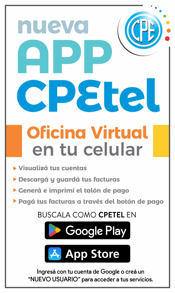 Otra opción es la descarga de la nueva aplicación para celulares que se encuentra disponible tanto para sistemas Android como para IOS, en sus respectivas tiendas de apps: Google Play y App Store. En ambos casos buscándola como «CPETEL».