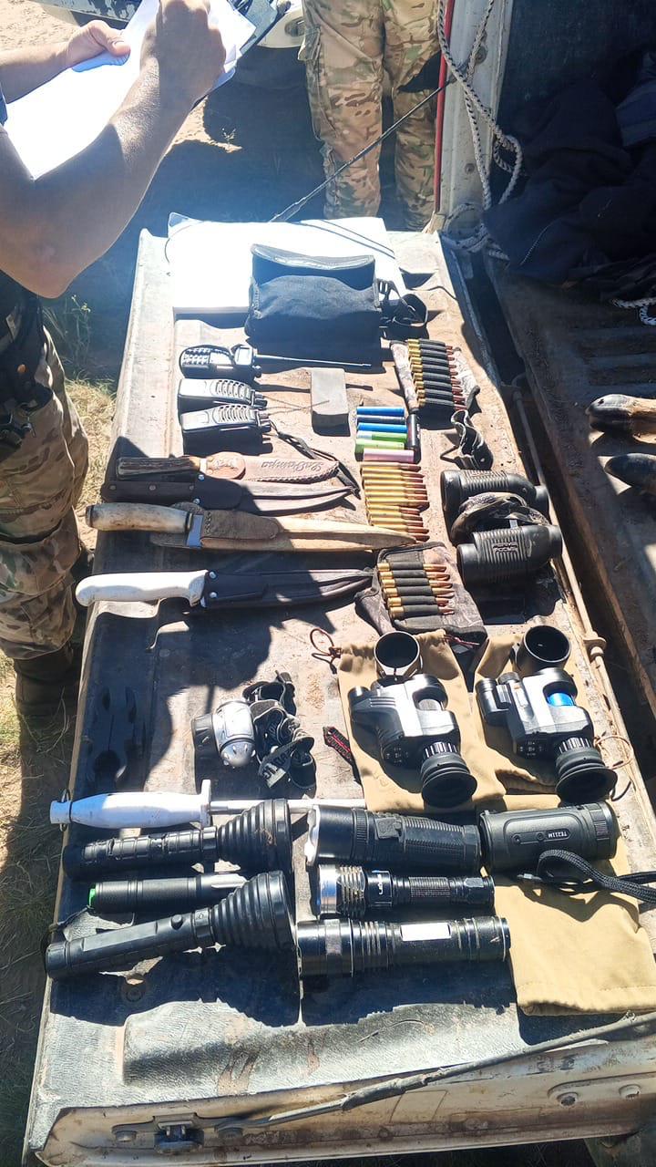 Por otra parte, a partir de denuncias de productores rurales, se concretaron allanamientos en Santa Rosa y en un establecimiento cercano a Naicó. Allí se incautaron vehículos, armas de fuego, silenciadores, trofeos no declarados y equipamiento tecnológico utilizado para la caza furtiva.