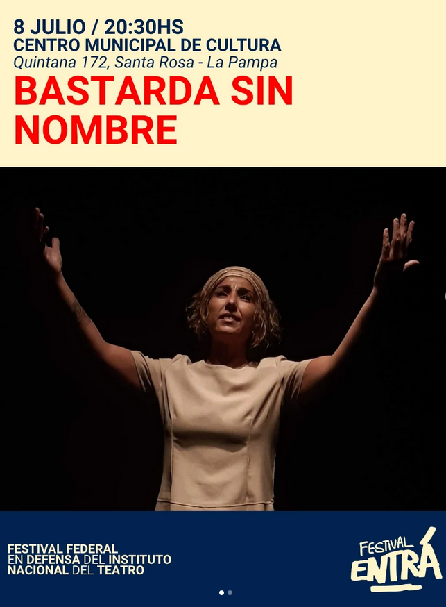 La Pampa se suma a las provincias que de manera conjunta, llevan adelante la defensa del Teatro y puntualmente declaran el NO AL CIERRE DEL INT, con un festival a la gorra que se reproduce en las salas de todo el país, alzan la voz para visibilizar la disconformidad con los recortes a la cultura del gobierno y de Milei. Edith Gazzaniga comentó entrevistada en FM Sonar cual es el contexto que atraviesan; y además invitó a l función de la obra «Bastarda sin nombre» este jueves a las 20:30 horas en el Centro Municipal de Cultura de Santa Rosa.