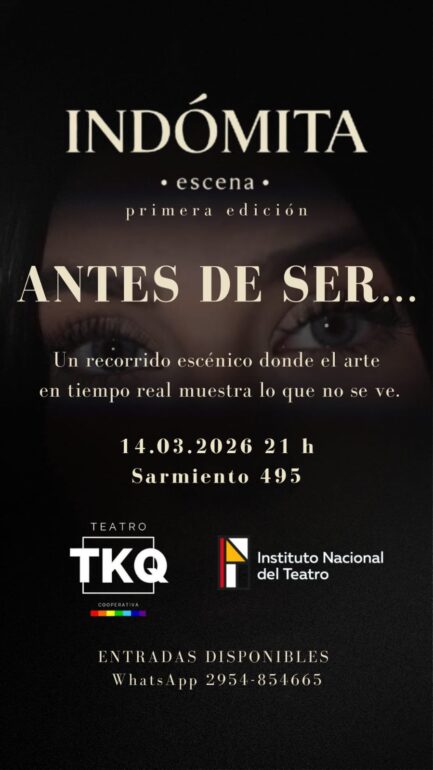 La cita es el sábado 14 de marzo, a las 21 horas, en la sala del Teatro TKQ, ubicado en calle Sarmiento 495 de la ciudad de Santa Rosa, las entradas anticipadas ya están disponibles y pueden solicitarlas, además de seguir el proyecto en Instagram: @indomita.escena
