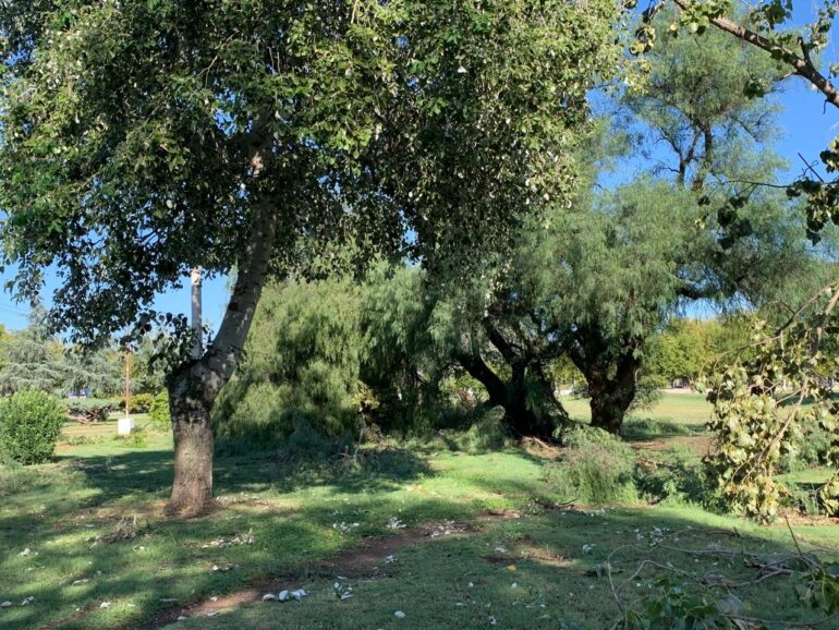 La ciudad también quedó atravesada por el riesgo: cables caídos y tramos completos de líneas eléctricas recostados sobre el asfalto obligaron a un corte general del servicio. La restitución se realizó de manera progresiva y bajo estricta supervisión para evitar accidentes, en coordinación entre el municipio y el gobierno provincial.