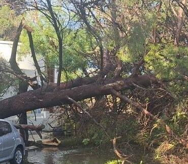 El fuerte temporal que afectó a Santa Rosa y localidades vecinas provocó la caída de columnas y redes de energía y telecomunicaciones, lo que obligó al despliegue de múltiples cuadrillas de la Cooperativa Popular de Electricidad para restablecer los servicios.